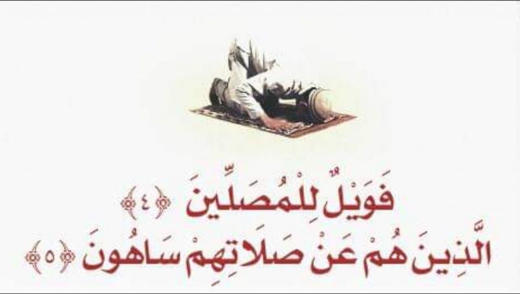 • أما عن تفسير قوله تعالى: (فَوَيْلٌ لِلْمُصَلِّينَ، الَّذِينَ هُمْ عَنْ صَلَاتِهِمْ سَاهُونَ، الَّذِينَ هُمْ يُرَاءُونَ، وَيَمْنَعُونَ الْمَاعُونَ)، فالمقصود بالويل هو العذاب الشديد والمقصود بالسهو هو التساهل في الصلاة، وليس المراد منه ترك الصَّلاة، فالترك كُفر.