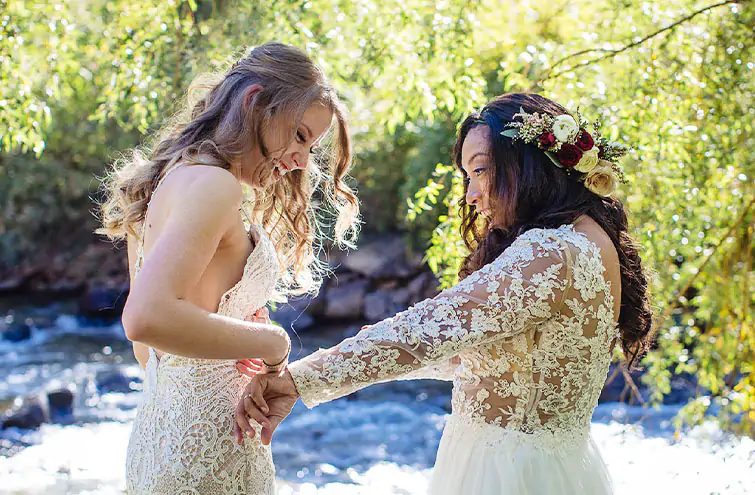 وحضور حفل زفاف لامرأتين معًا يرمز إلى بدء حياة جديدة أفضل والتخلص من المخاوف السابقة والقدرة على تحقيق الاستقرار.